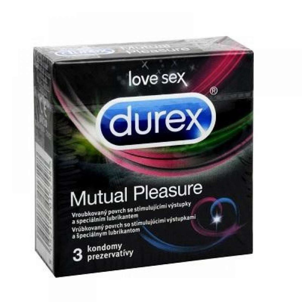 DUrability – Reliability – Excellence neboli odolnost, spolehlivost a dokonalost, to je značka DUREX již od roku 1929. Jednoduše, kondomy Durex Vám poskytnou kvalitu, kterou očekáváte. Durex Mutual Pleasure jsou kondomy navržené tak, aby pomohly sladění partnerů. Mají vroubkovaný povrch s výstupky pro intenzivnější stimulaci ženy a obsahují silikonový lubrikant Performa™, který oddálí mužské vyvrcholení. Kvalita Durex: každý kondom je 100% elektronicky testován. U každé šarže se provádí dalších 5 testů kvality.